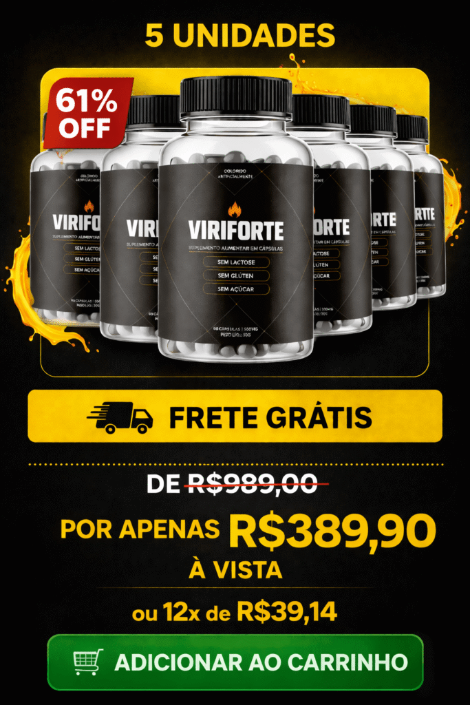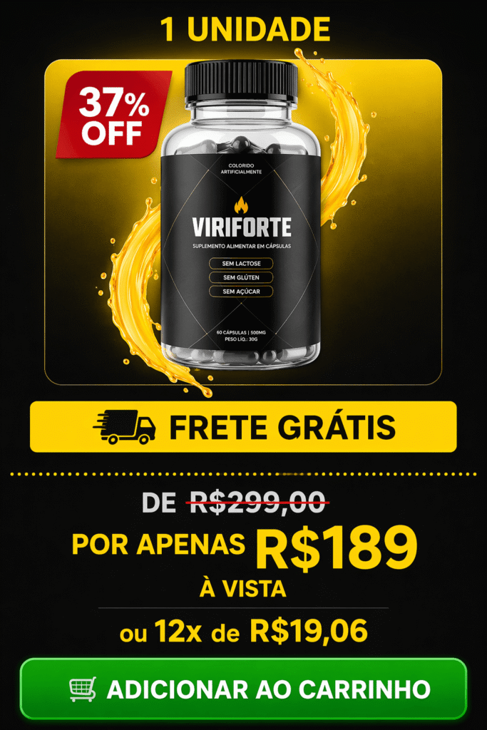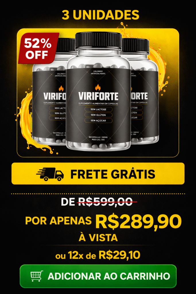 Viriforte é um suplemento desenvolvido com uma fórmula 100% natural, premium e segura, criada para restaurar a potência e o desempenho masculino